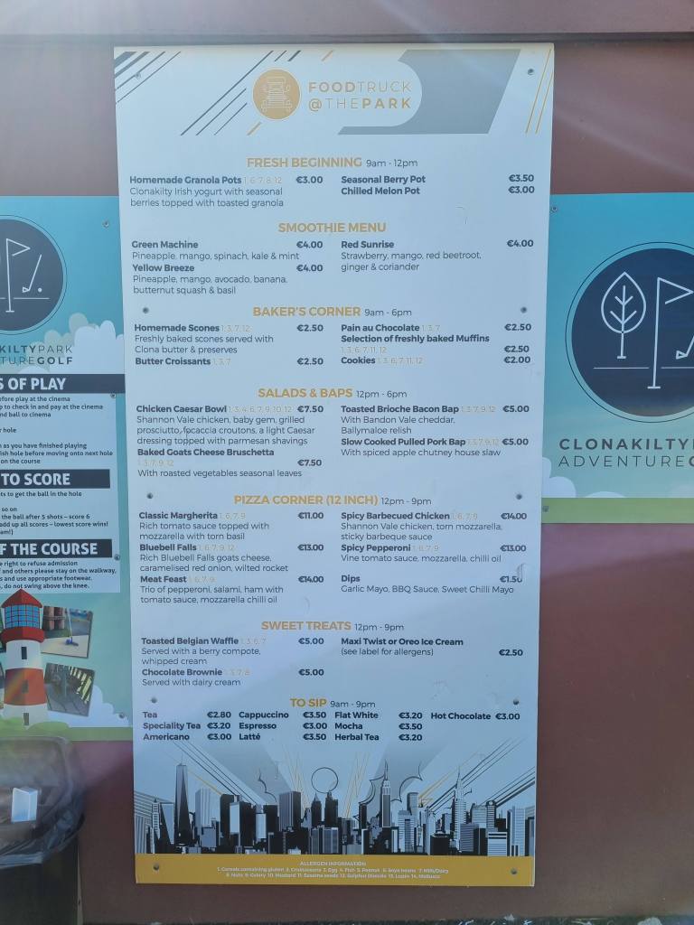 I’ve popped the menu for the food truck here for anyone who is planning a trip to the adventure centre or hotel.