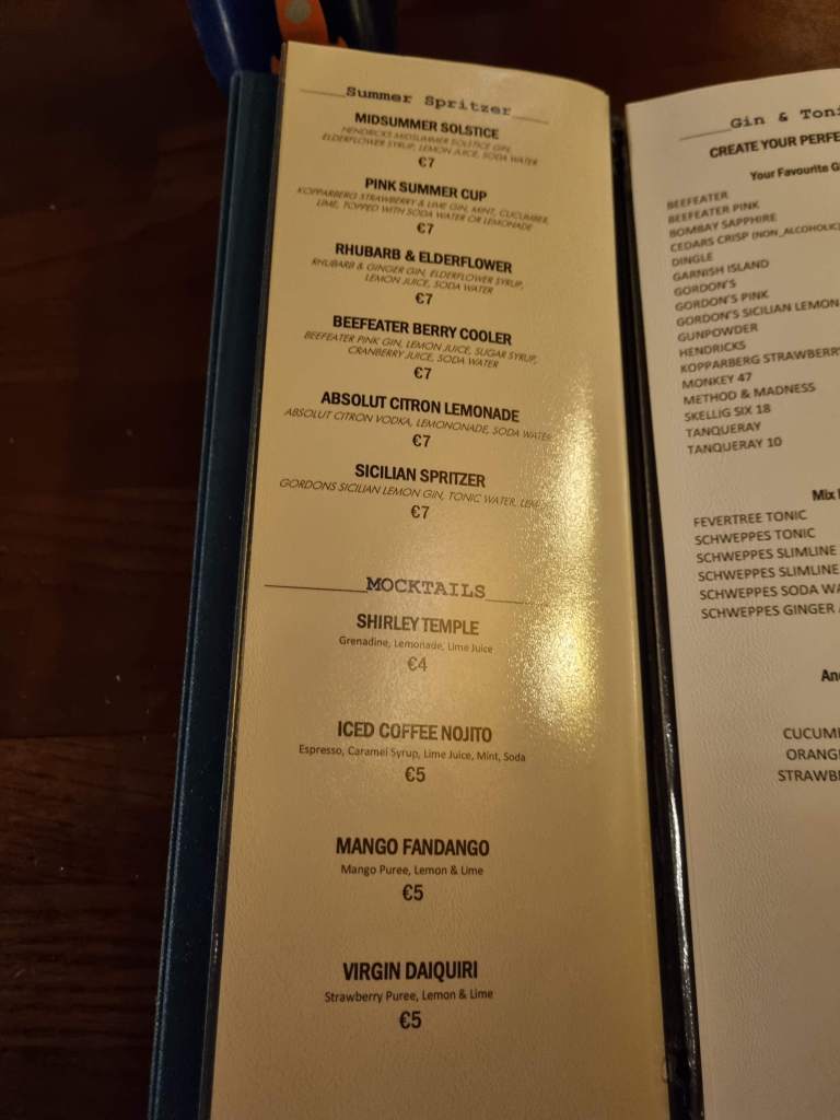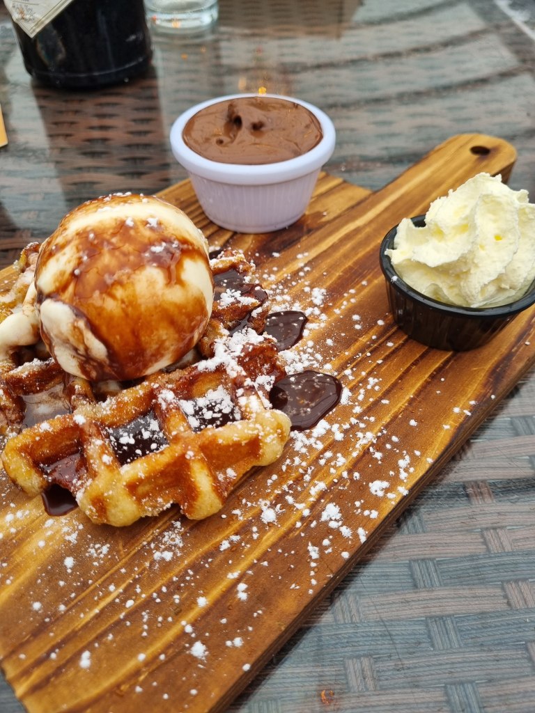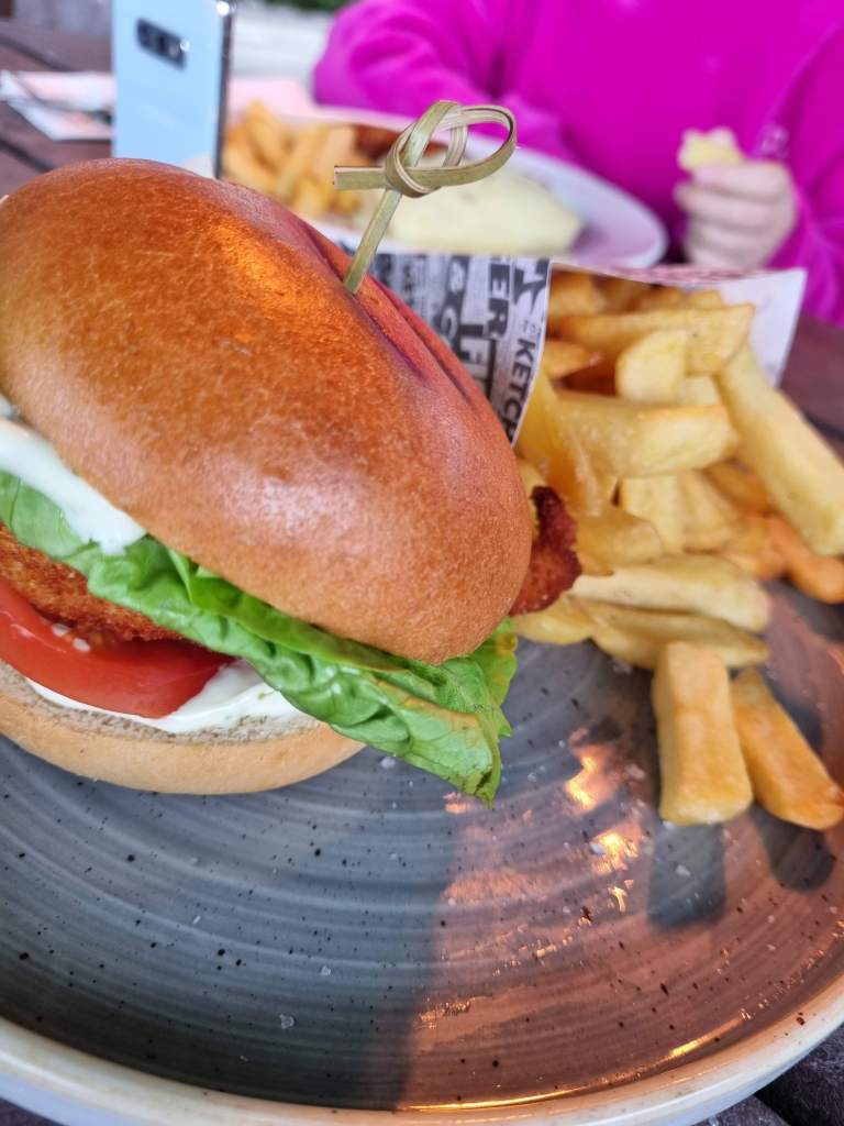 The food was delicious, the kids had sausage and mash, and goujons and chips. I had a Thai curry and Brian had a burger and chips. Just look at that burger lads, it was class. The setting that they have created on the terrace for outdoor dining is so relaxing and welcoming. It’s outdoors but feels like you are indoors because it is covered in, so it’s perfect for the lovely Irish weather.