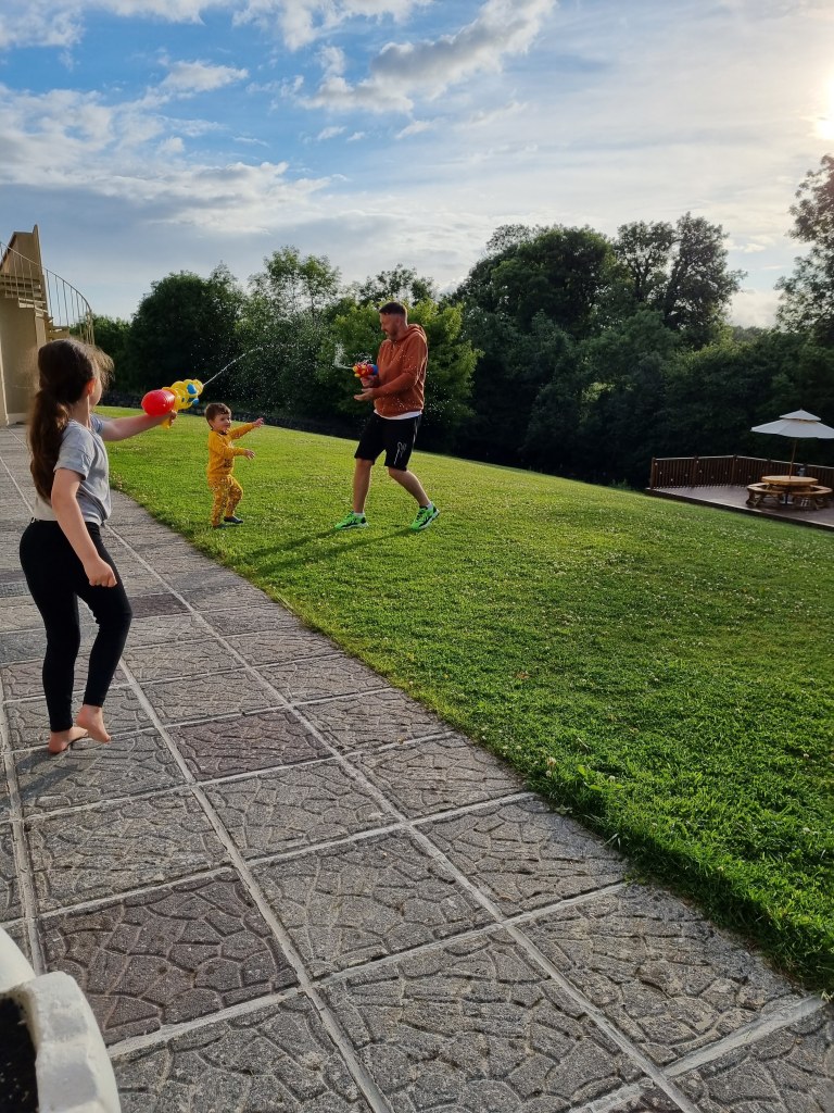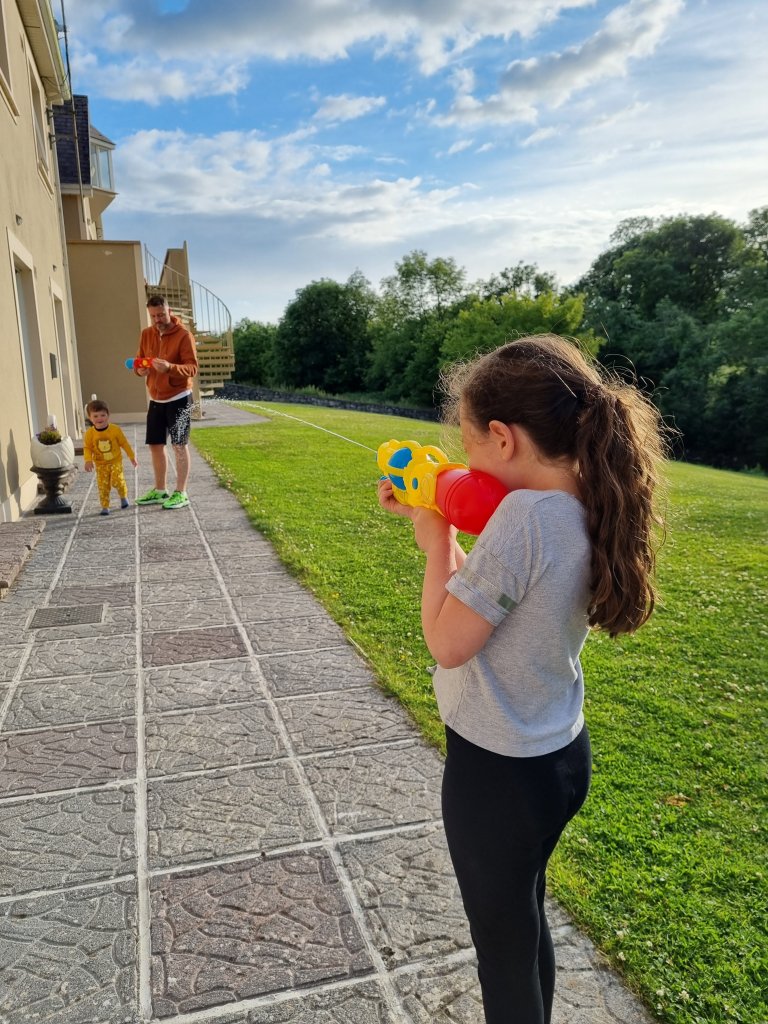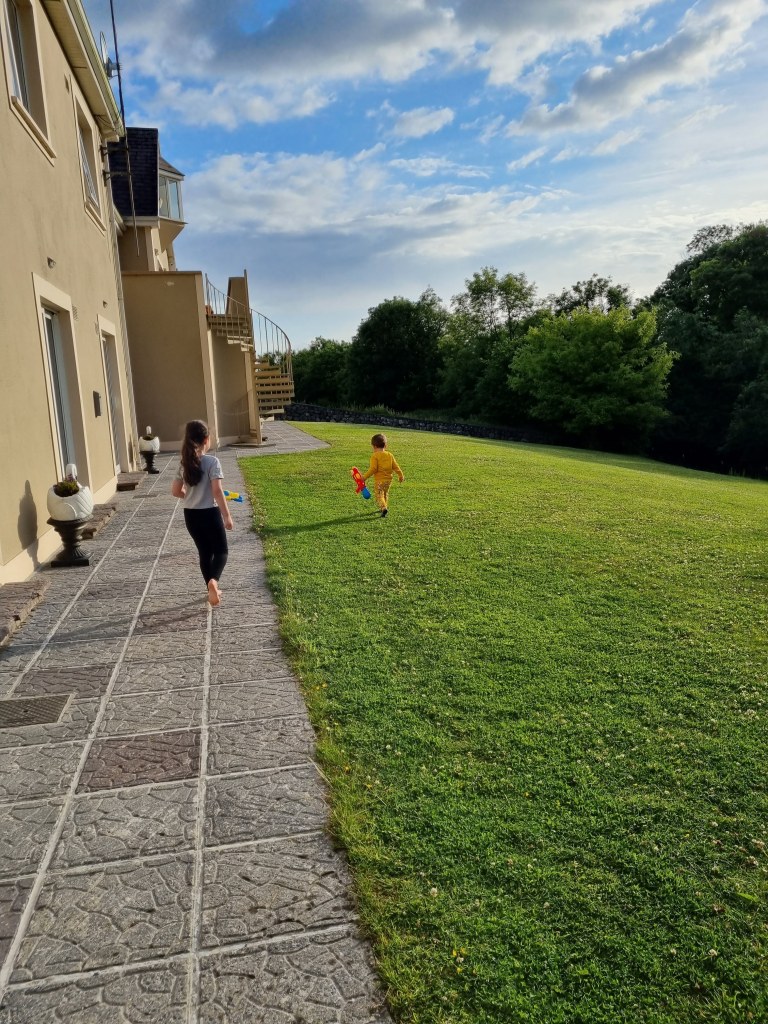By this stage we had all pretty much hit a brick wall, we were shattered. We drove 2 minutes down the road from Ardilaun Guesthouse and got some McDonalds and brought it back to the room. Once the kids had filled their bellies they got a new lease of life and spent the evening in the gardens at the back of the guesthouse having water fights, chasing the robot lawnmower and watching in awe as the fish jumped out of the river that runs adjacent to the property. Our room was so spacious and had a sliding door that opened out onto the gardens at the back of the guesthouse which was so nice.