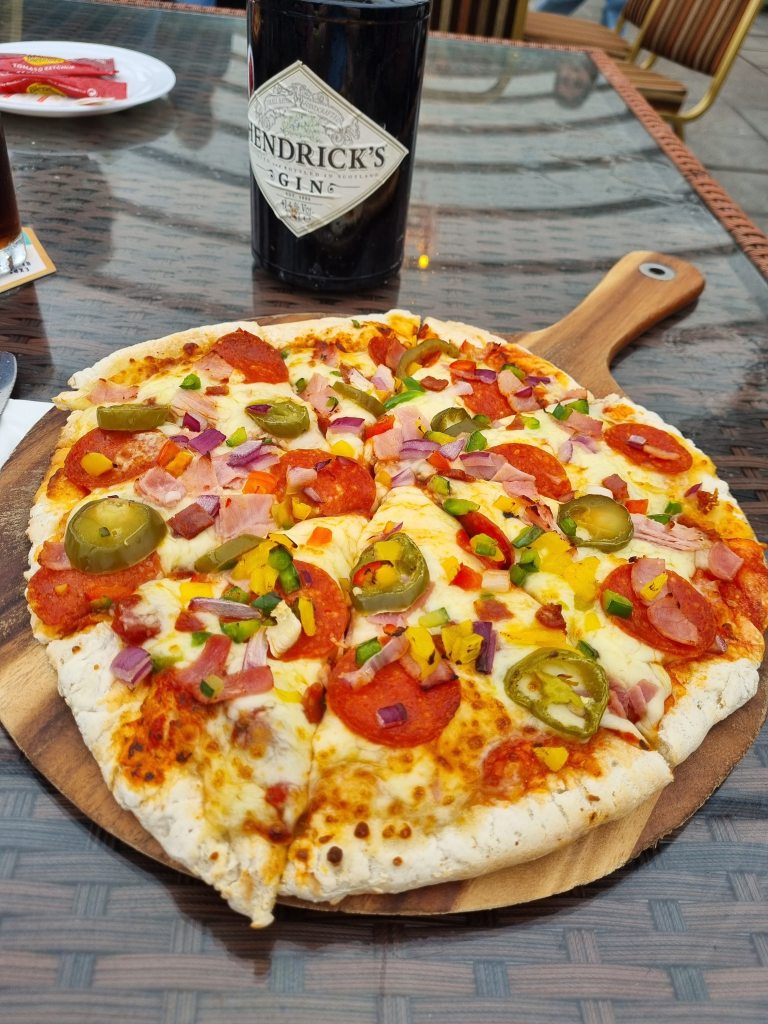 We had dinner booked for half 8 in the restaurant so we made our way back to the apartment to get showered and ready for the evening. I was looking forward to chilling with a nice meal and a glass of vino after a fun filled day. Remember what I said earlier about things never going to plan with kids? Well this was the point that Ellie informed us that her new friend that she made earlier in the day told her about the evening entertainment and how they were doing TikTok dance challenges the evening before at the entertainment. So that was the end of the dinner plans, we grabbed a quick pizza in the marquee beside the cinema (yes you read that correctly, there is a cinema in the hotel), and headed for the entertainment.
