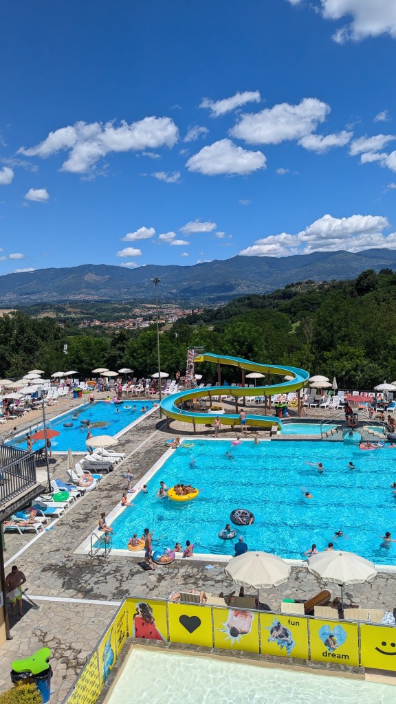 So, when it came to choosing our next Italian campsite, we knew it was always going to be tough to top what we had experienced at Union Lido. After much searching and deliberation, we finally decided on HU Norcenni Girasole Club. This time around, we wanted a campsite in Tuscany, as a week later we would be picking up a brand new motorhome on a one-way rental to Edinburgh—but that’s a story for another day.